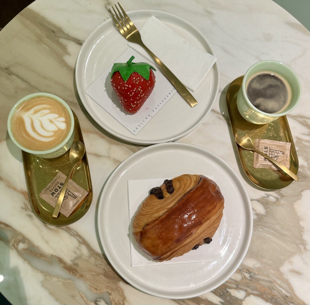 - Fetiche Patisserie: a cute bakery with beautiful cakes and pastries. I had a macchiato, strawberry cheesecake shaped like a strawberry, and a chocolate croissant.
