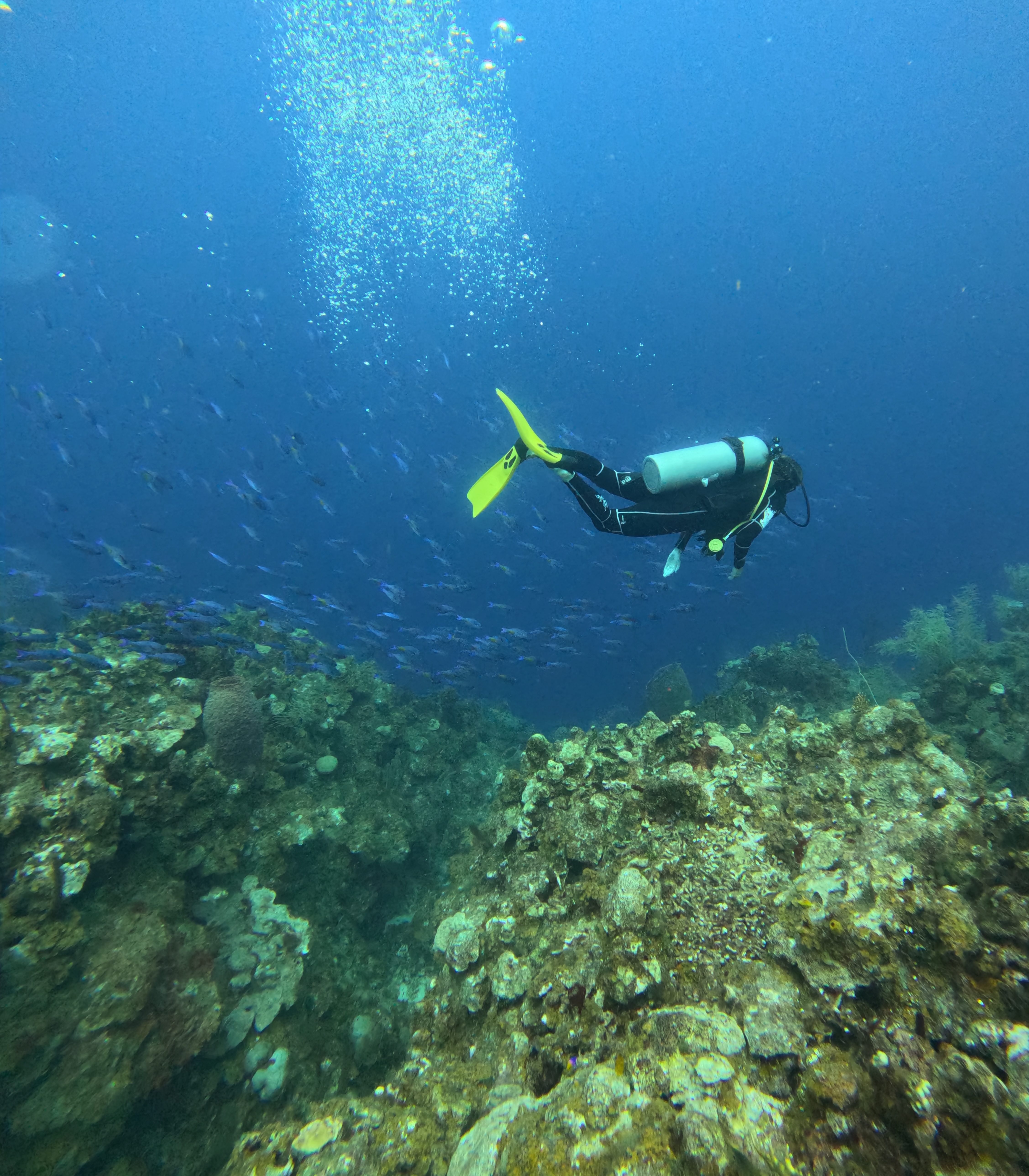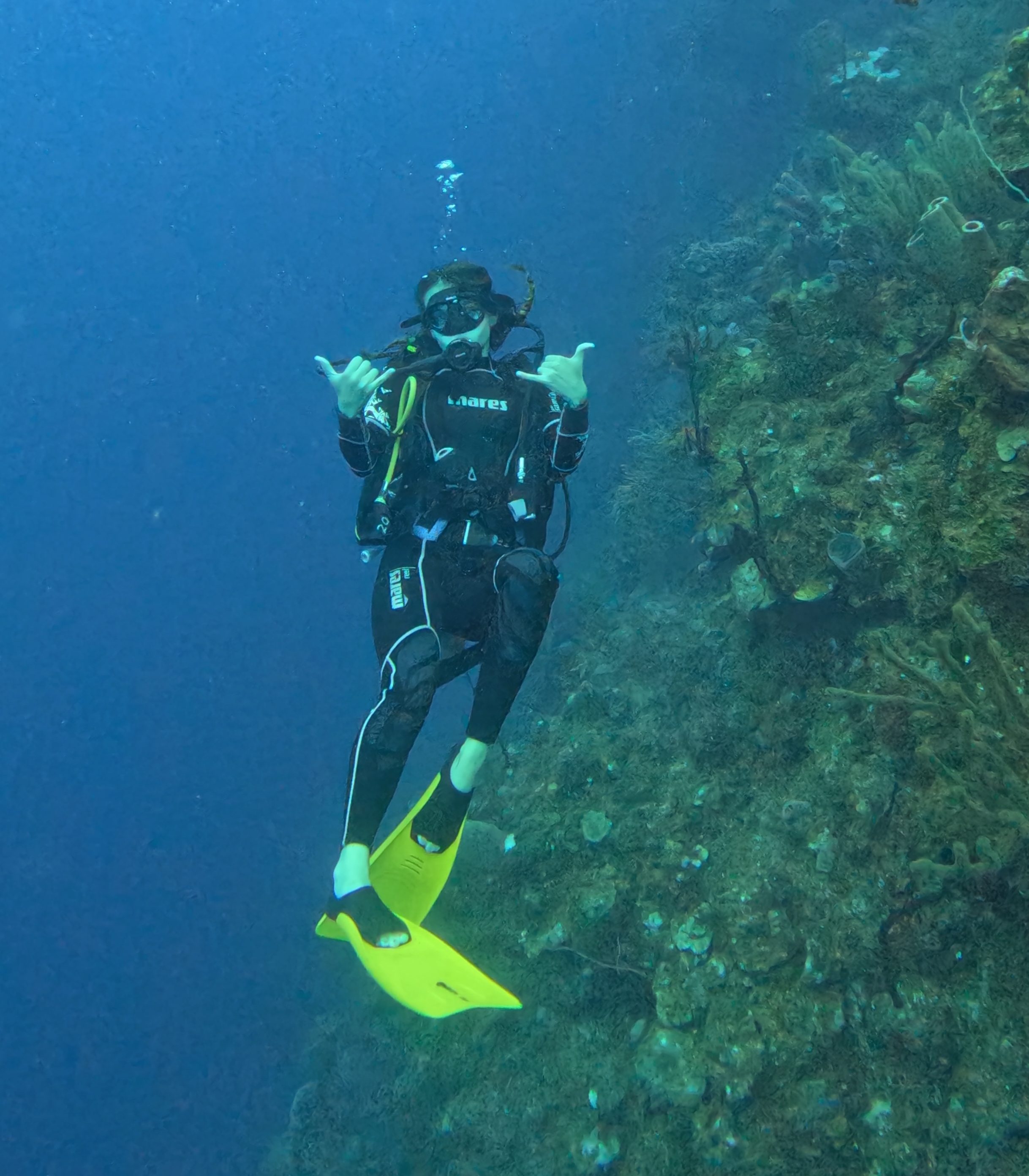 Scuba diving is a unique hobby. I often get questions about how I got started or what it is like. As for learning to dive, I owe a lot of credit to my parents who began scuba diving together before I was alive. When I was about 12 years old, we took a family trip to Roatan. That was the first time I tried scuba diving. I was quickly captivated by the colors, creatures, and overall awe I had for the ocean. At fifty feet underwater, I felt like I was experiencing a whole new world. All of this was just beneath the surface the whole time. I got my junior PADI scuba diver certification on that trip. In 2018, I took a trip to Thailand where I got my open water certification to extend my depth limitations. It often surprises people who have never been scuba diving that this is without a doubt one of the coolest but also most intimidating things I have ever done.