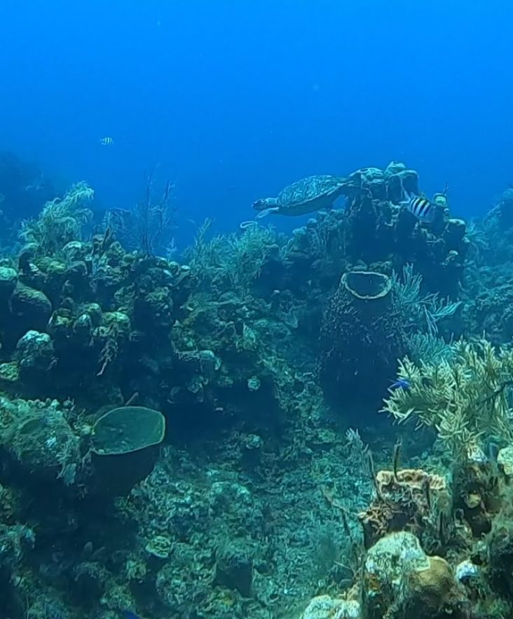 I recently took a scuba diving trip to Roatan, Honduras. It is a prime diving destination because of its location in the Mesoamerican Reef. This reef is the largest barrier reef in the Western Hemisphere. On this trip we saw many species of fish and coral. We also encountered other marine animals like turtles, rays, squid, and lobster.